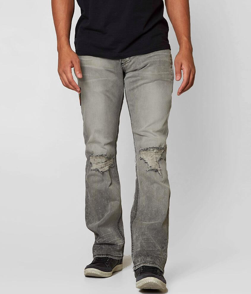 Regular fit jean Comfort stretch fabric Straight from knee to hem Low rise, 17" bottom opening Embroidery on darted back pockets Hand sanding, whiskering, grinding, destruction with fill yarn, repair stitch, denim backing and patch details Zip fly Shoe sku 942660 Model Info: Height: 6'0" Chest: 35" Waist: 34 1/2" Hip: 41" Wearing Size: 32x32