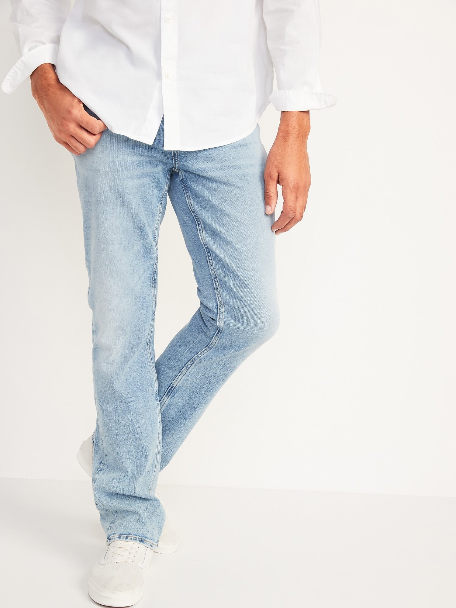 Online exclusive! Contoured waistband, with button closure and built-in belt loops. Zip fly. Scoop pockets and coin pocket at front; patch pockets at back. Durable, light-wash cotton denim. Built-In Tough jeans have 2x the strength and tear resistance of regular denim. Basically indestructible. Work hard, play hard. Engineered with innovative Built-In Flex stretch technology. Equal parts comfort & movement. Flexin' on 'em. These jeans are part of our Washwell™ Program that uses 20% less water than conventional wash methods. Since 2017, we’ve saved 1. 29 billion liters of water. Better Jeans. Better Planet. Washwell™ Sits at waist. Men's boot-cut jeans are slim through hip & thigh. Boot-cut leg. Model is approximately 6'1" and wears a size 32W x 32L. Machine wash cold, tumble dry low. spandex 1% cotton 99%