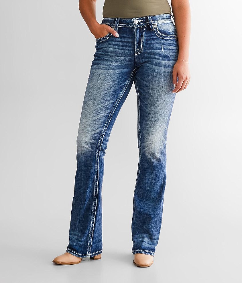 These women's curvy bootcut stretch jeans come in inseam lengths of 30", 32", 34" and 36".