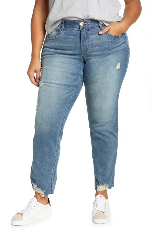 Fall for the vintage-inspired wash of these shapely high-waist jeans styled with embroidered pockets and edgy distressing. 29 1/2" inseam; 16" leg opening; 11" front rise; 18 1/2" back rise (size 18W) 98% cotton, 2% spandex Machine wash, tumble dry Imported
