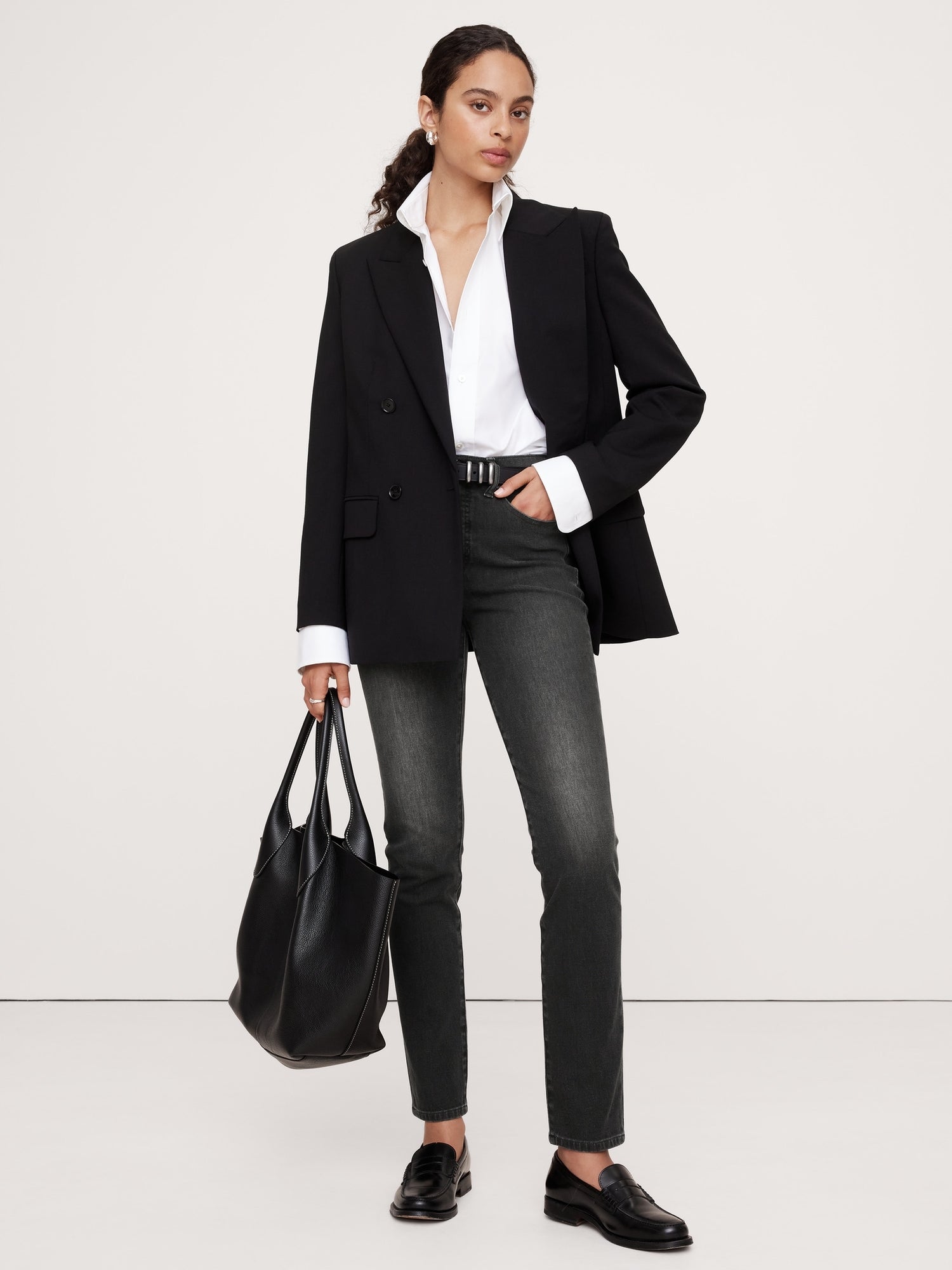 These women's high rise slim jeans hit at the ankle and come in a 26", 28" or 31" inseam.