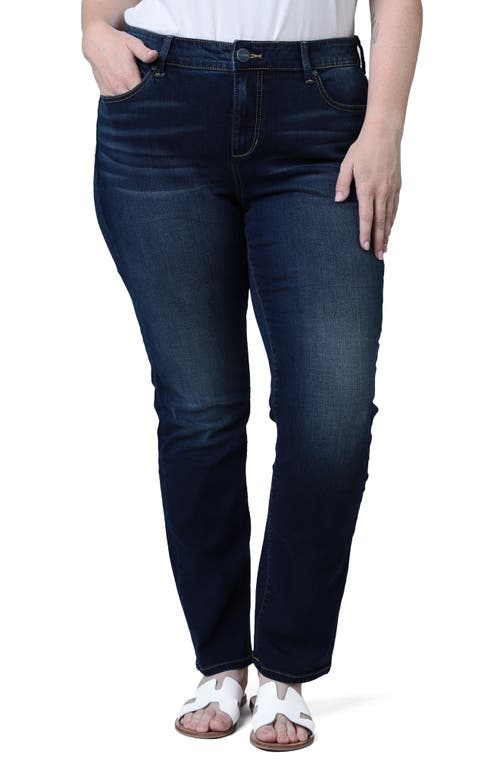 A high-rise, straight-leg cut and inky stretch denim make these figure-flattering jeans your go-tos for casual or elevated looks. 30" inseam; 16 1/2" leg opening; 12" front rise; 19 1/2" back rise Zip fly with button closure Five-pocket style 52% cotton, 30% rayon, 16% polyester, 2% spandex Machine wash, tumble dry Imported Women's Clothing