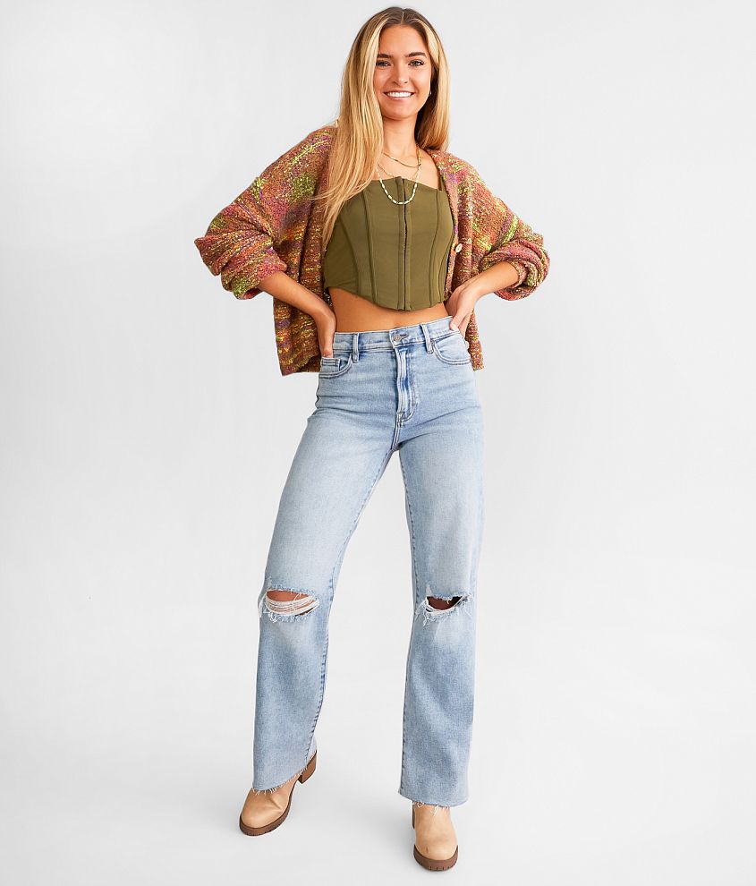 These women's jeans have a high rise and torn knees. Inseams are 31" and 33".