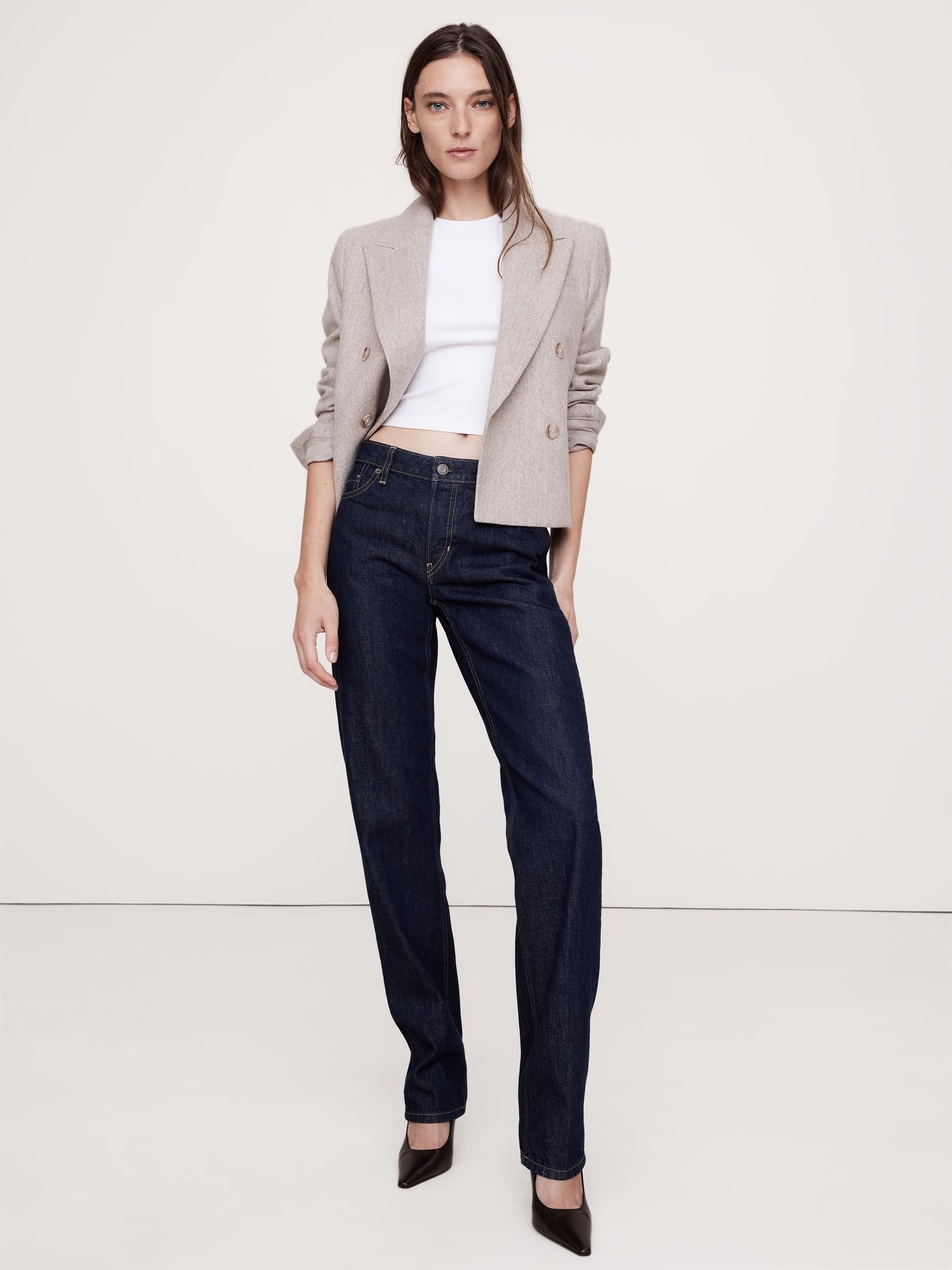 These women's low rise jeans are made from rigid 100% cotton. Inseam lengths are: petite 29.5", regular 31.5", and tall 34.5".