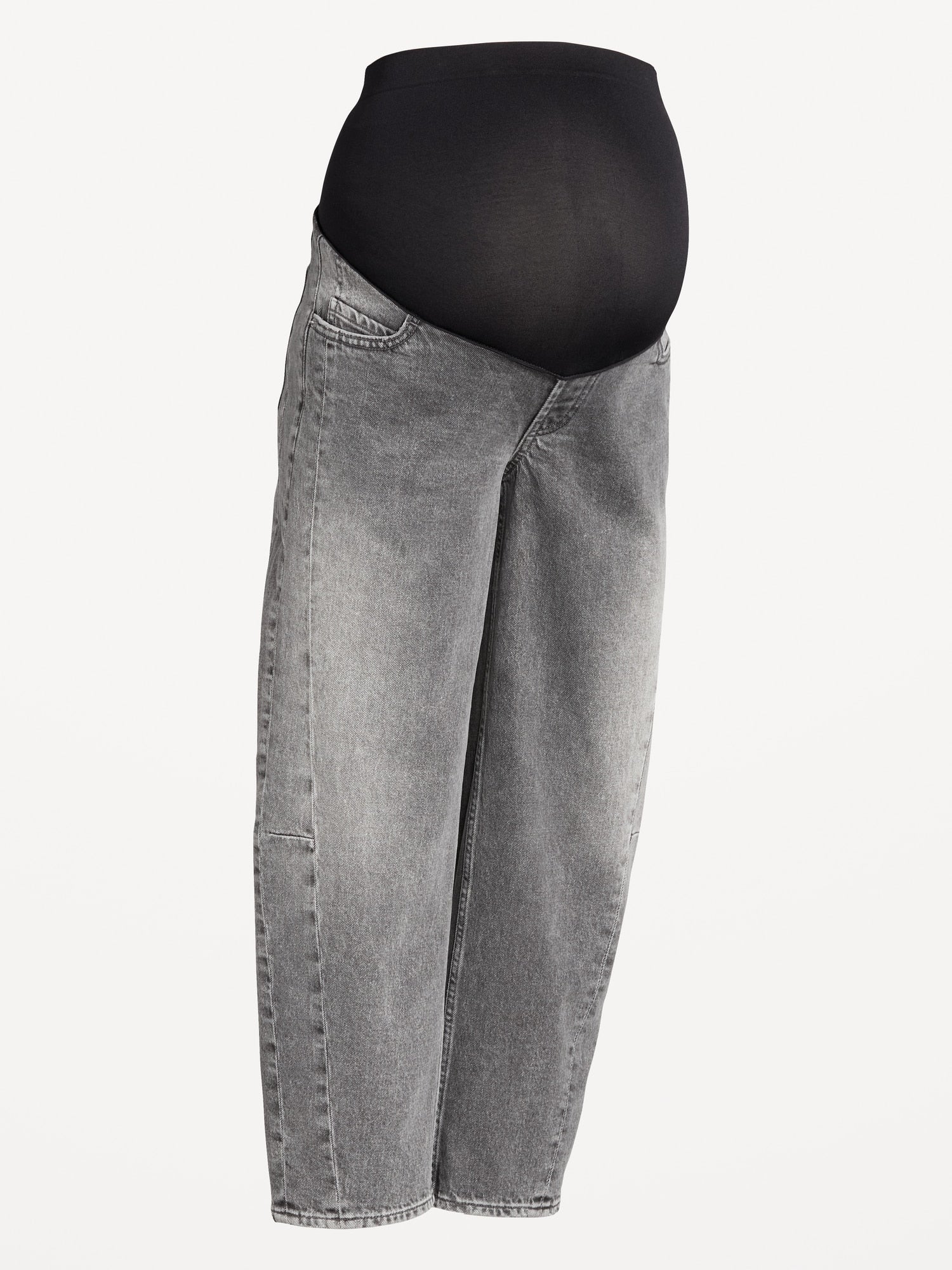 These maternity barrel jeans have a full panel and hit above the ankle. 26" inseam.