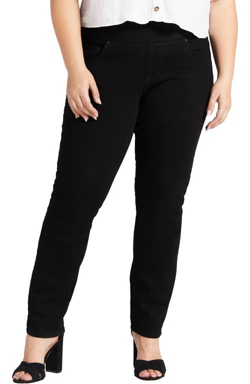 Skinny jeans with five-pocket styling pull on with a wide waistband that ensures a smooth, sleek fit with plenty of stretchy comfort. 31" inseam; 16" leg opening; 11 1/4" front rise; 19" back rise 69% cotton, 20% polyester, 9% viscose, 2% elastane Machine wash, tumble dry Imported