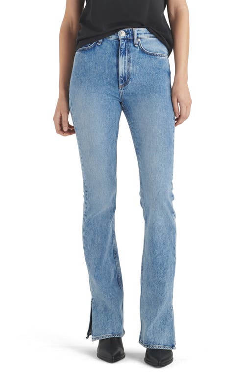 These women's low-stretch denim jeans have a high rise and bootcut leg. The inseam length is 32.5".