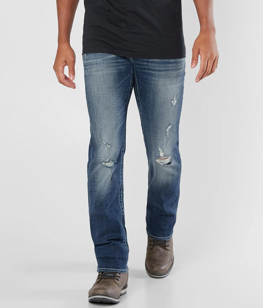 Slim fit jean Performance stretch fabric for a higher level of flexibility Straight from knee to hem Low rise, 15" bottom opening Pieced and darted back pockets Hand sanding, whiskering, dremmeling and destruction with fill yarn details Zip fly Model Info: Height: 6'0" Chest: 35" Waist: 34 1/2" Hip: 41" Wearing Size: 32x32