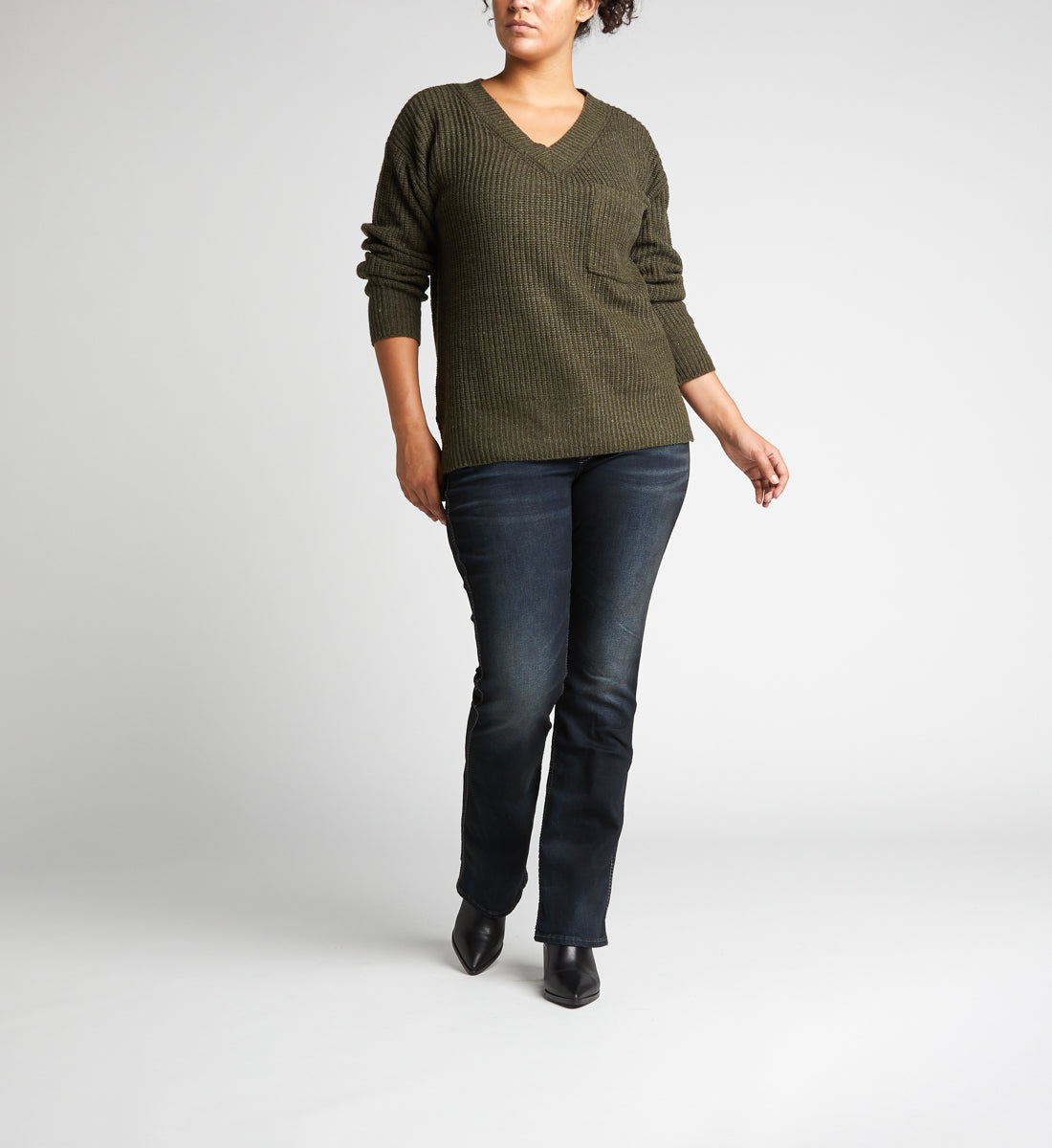 The ultimate curve-flattering jean Suki features a comfortable mid rise and relaxed fit through the hip and thigh. Made with our innovative Denimotion fabric it's guaranteed to fit like the first time every time. This pair has a dark indigo rinse with subtle distressing for day-to-night appeal. Finished with a slim bootcut leg and clean back pockets. Silver Jeans Women's Suki Slim Boot Rinse Wash Pant Mid Rise in Dark Indigo 12 31" inseam, Cotton/Polyester/Lycra Elastane