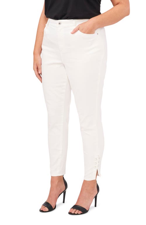 Pearly beads accentuate the ankle slits of these slightly cropped straight-leg jeans. 27 1/2" inseam Cotton/polyester/viscose/spandex Machine wash, line dry Imported