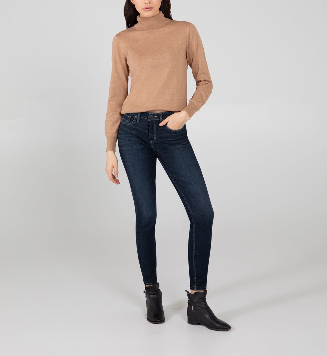 These curvy fit high rise women's jeans come in both a 27" inseam and 29" inseam.