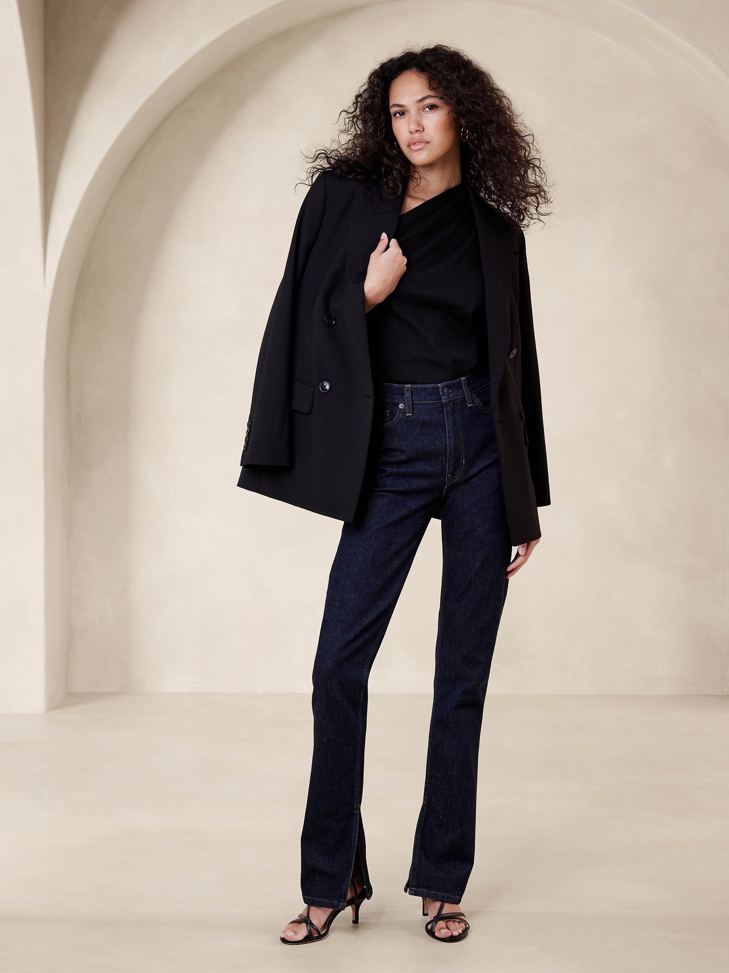 This women's organic cotton slim jean is a little looser than a skinny jean and has a split hem. Available in inseam lengths of 30.5,32.5 and 35.5.