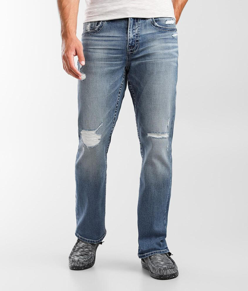 Relaxed fit jean Performance stretch fabric for a higher level of flexibility Straight from knee to hem Mid-rise, 18" bottom opening Embroidery on pieced and darted back pockets Hand sanding, whiskering, grinding, dremmeling, destruction with fill yarn, and mesh backing details Zip fly Shoe sku 960560 Model Info: Height: 6'2" Chest: 36 1/2" Waist: 34 1/2" Hip: 41 1/2" Wearing Size: 32x32