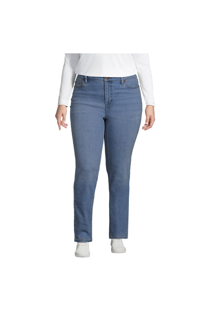 Women's Plus Size Mid Rise Straight Leg Blue Jeans