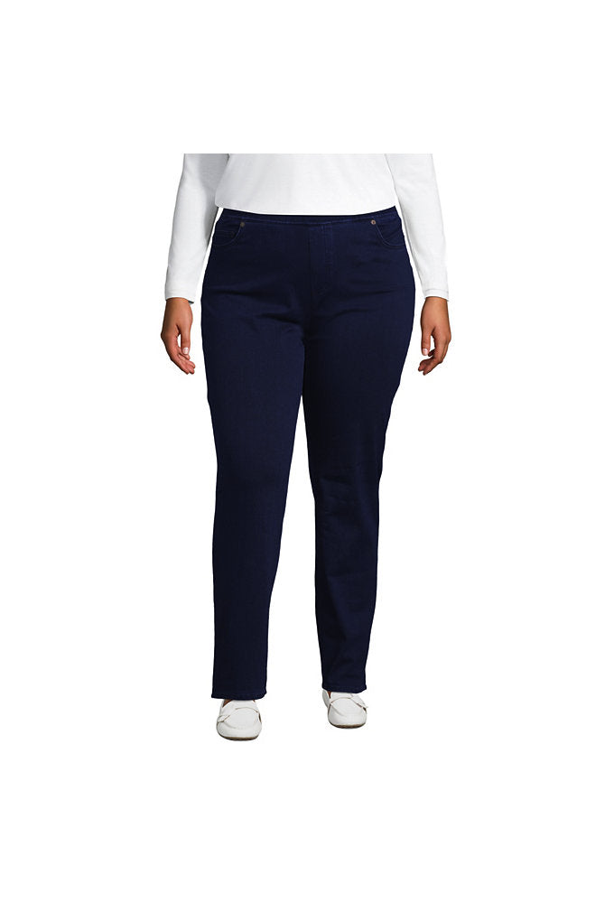 Women's Plus Size Starfish Mid Rise Pull On Knit Denim Straight Jeans