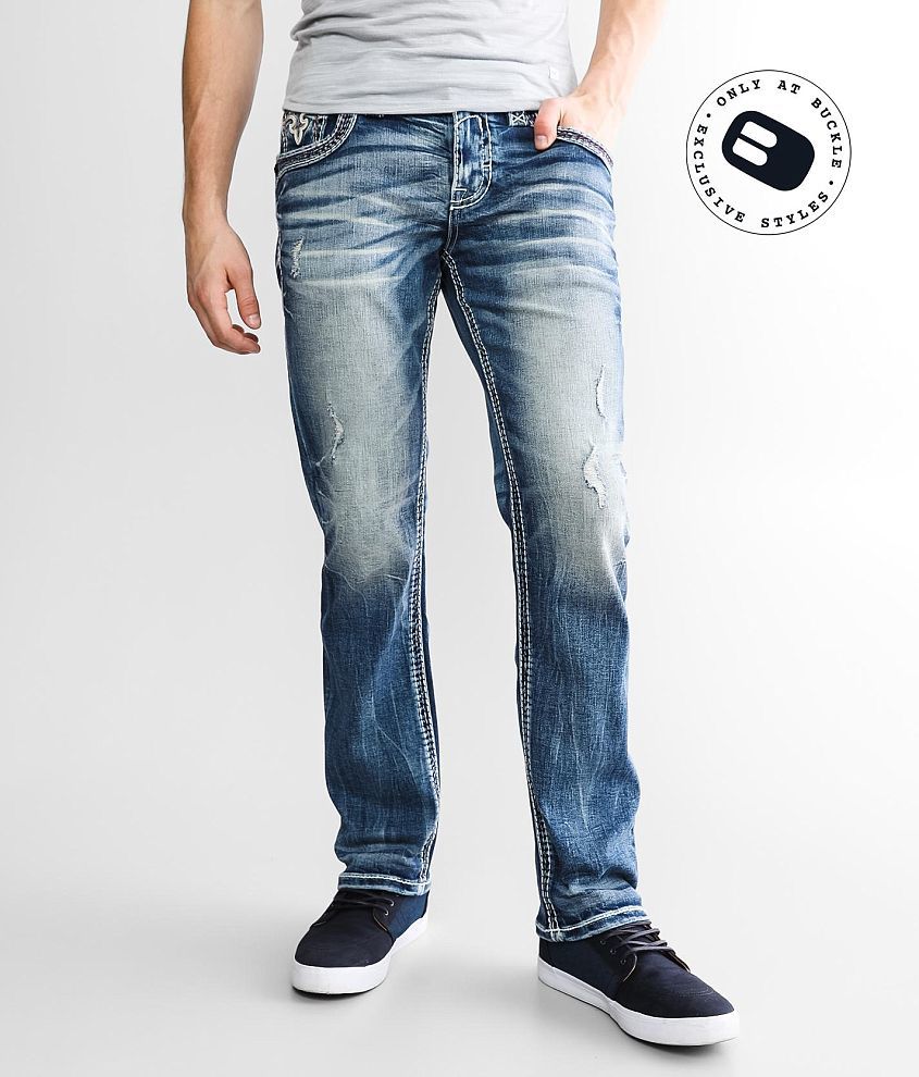 Regular fit jean Comfort stretch fabric Straight from knee to hem Low rise, 16 1/2" bottom opening Color pop stitch faux flap double back pockets Hand sanding, whiskering, grinding, destruction with fill yarn and veining details Zip fly Shoe sku 961248 Model Info: Height: 6'1" Chest: 41" Waist: 34" Hip: 40" Wearing Size: 32x32